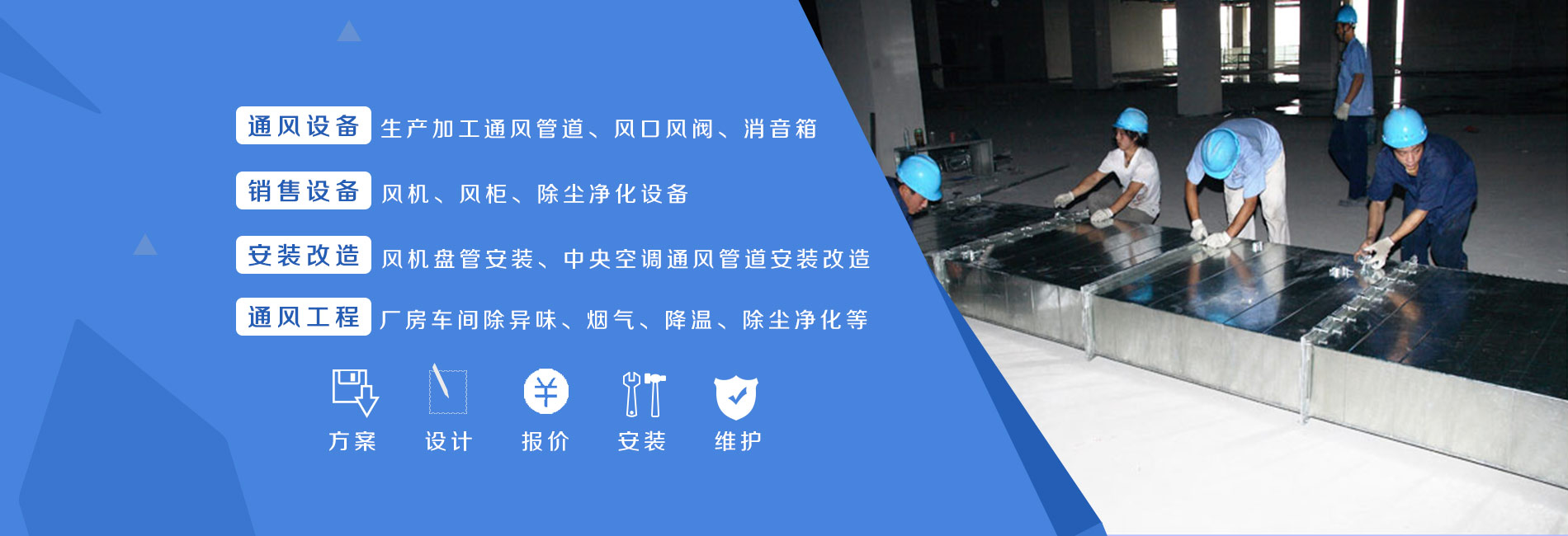 主營產(chǎn)品:中央空調(diào)安裝,消防通風(fēng)安裝,排油煙管道安裝,螺旋風(fēng)管安裝